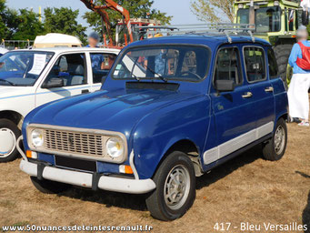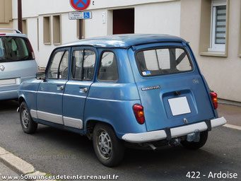 Tableau de teintes Renault 4 Berline Phase 3bis sauf TL Savane et GTL Clan (07/1981 - 05/1986) |